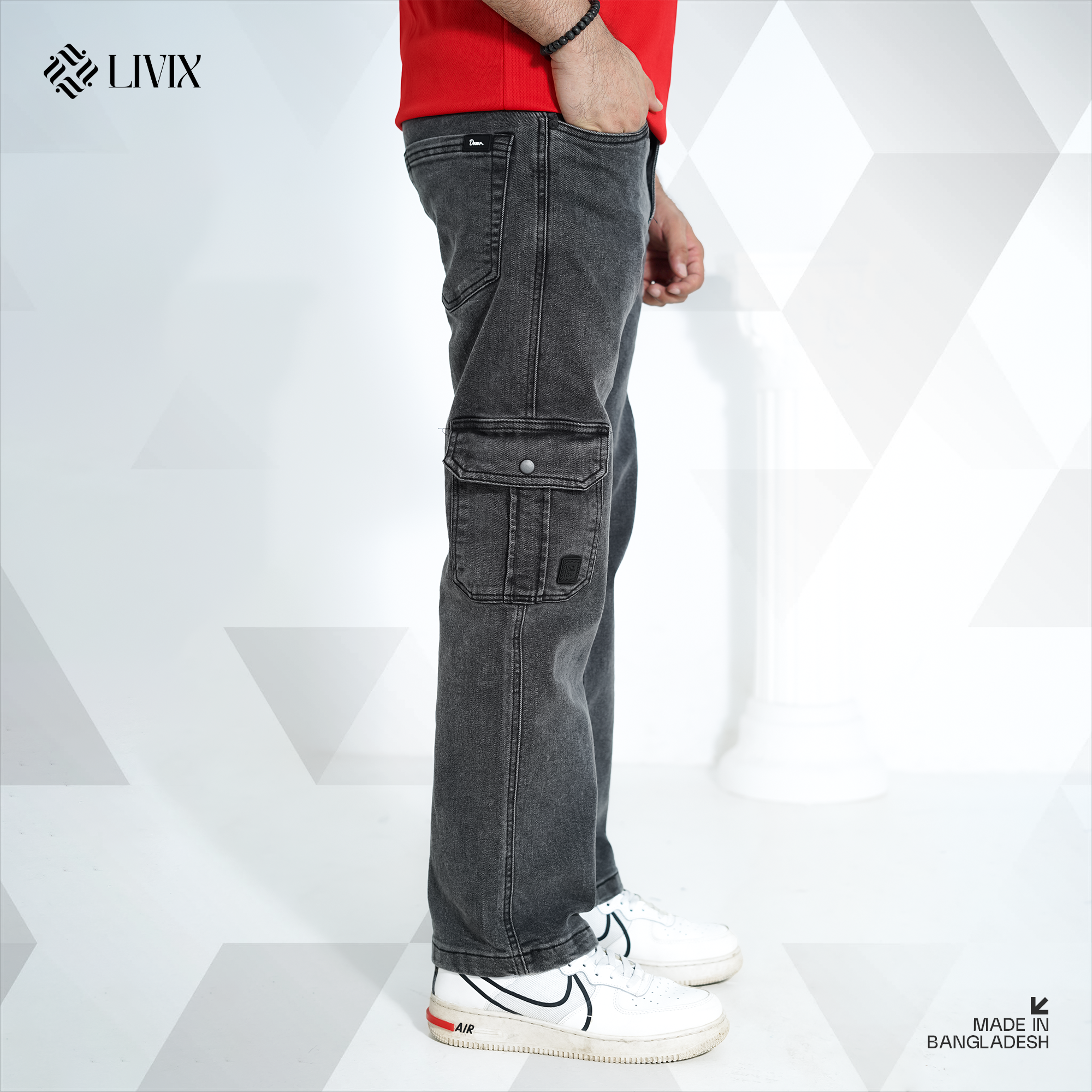 Step up your wardrobe with this trendy cargo-style denim pant and enjoy the perfect mix of fashion and function.