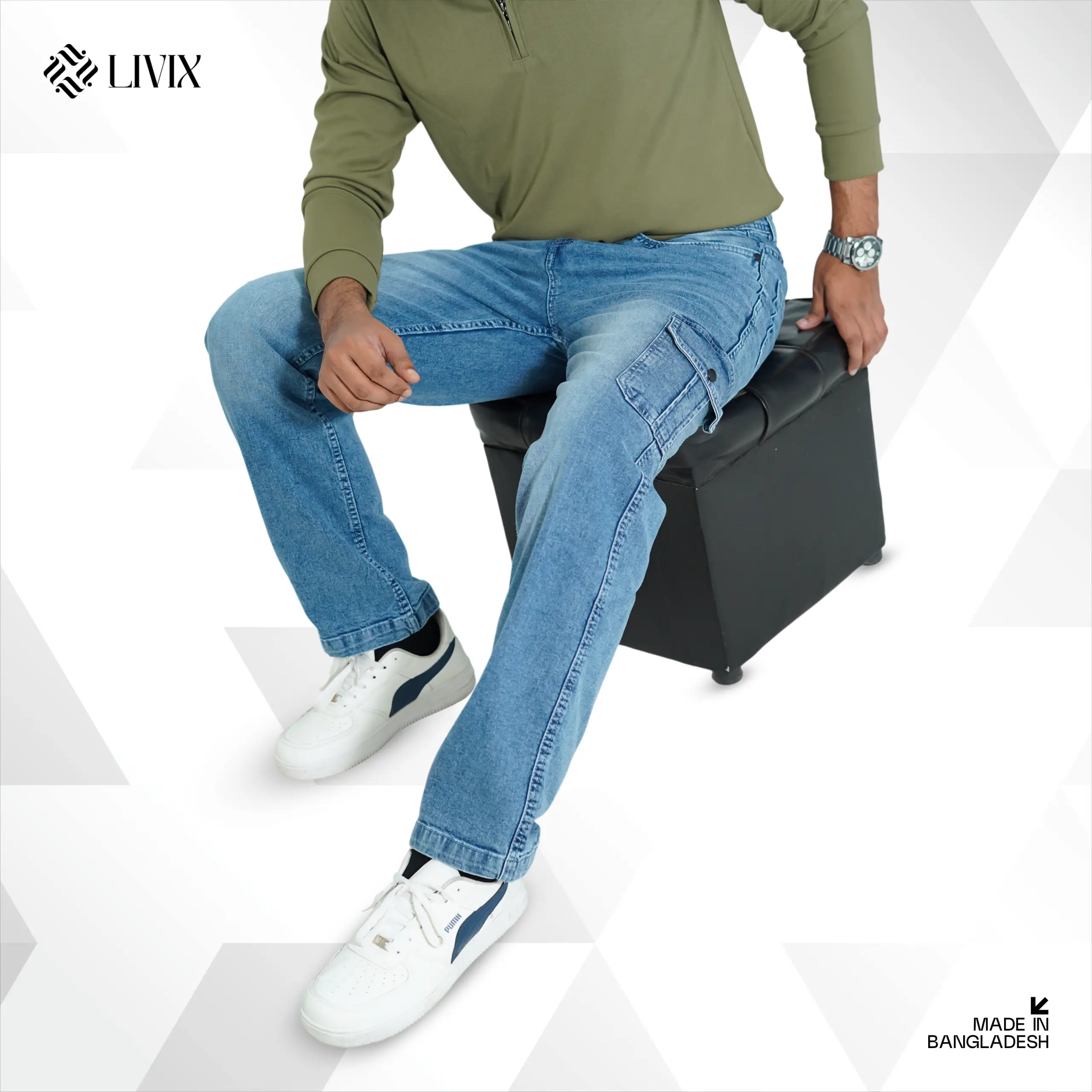 Step up your wardrobe with this trendy cargo-style denim pant and enjoy the perfect mix of fashion and function.