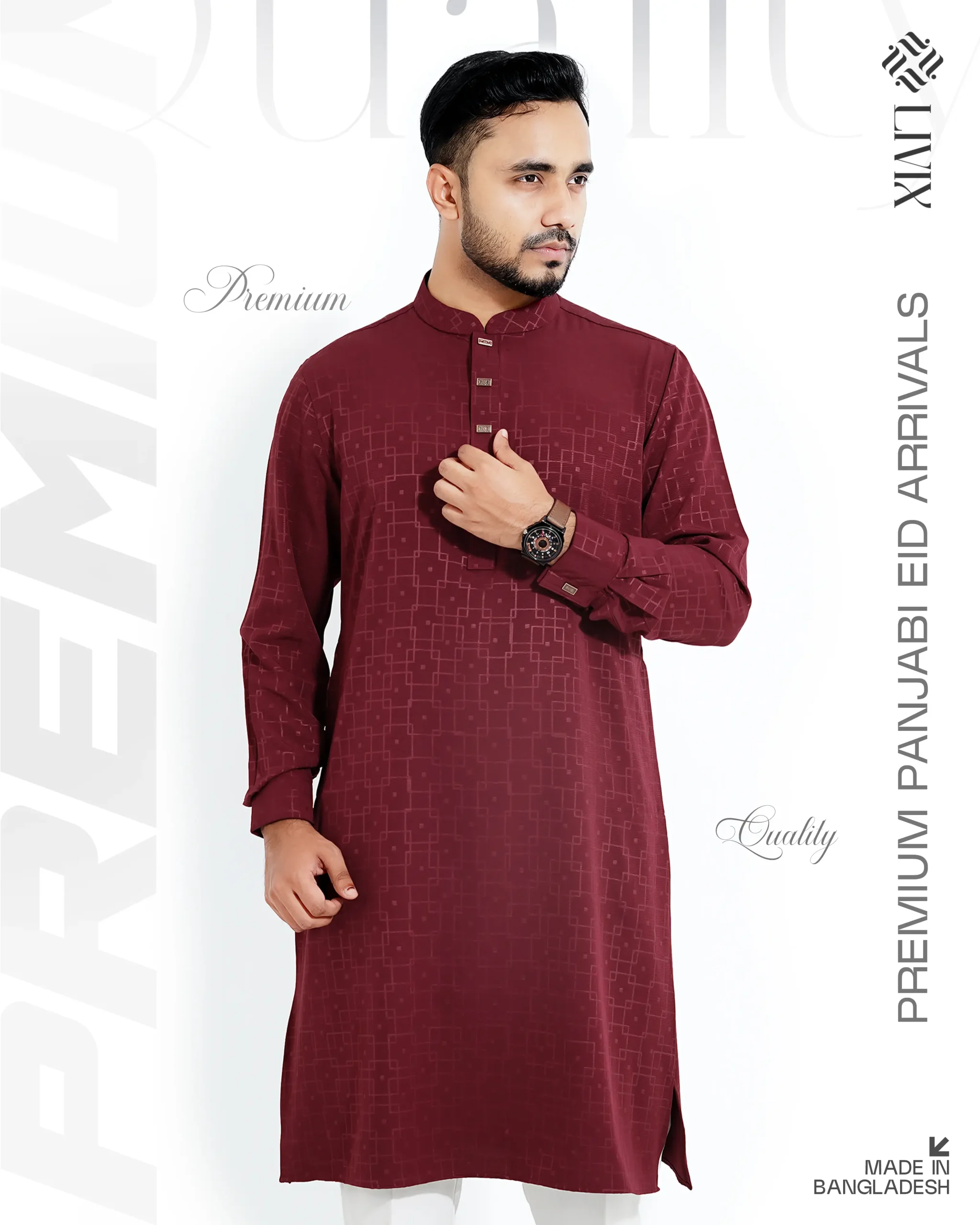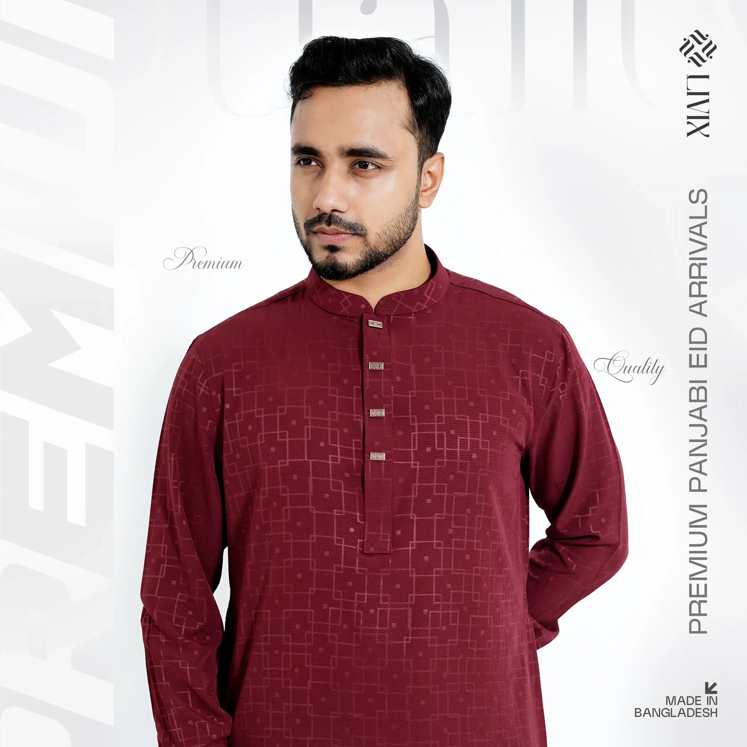 Step into elegance with the Livix Platinum Series Panjabi, crafted from luxurious China Jafran Fabric for a truly refined traditional look. This premium fabric offers a smooth texture, rich appearance, and comfortable feel, making it perfect for special occasions and festive gatherings.
