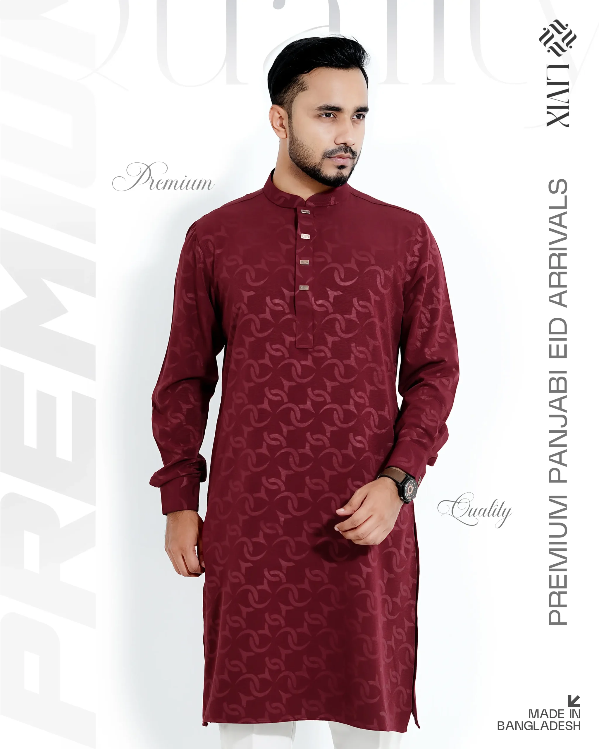 Step into elegance with the Livix Platinum Series Panjabi, crafted from luxurious China Jafran Fabric for a truly refined traditional look. This premium fabric offers a smooth texture, rich appearance, and comfortable feel, making it perfect for special occasions and festive gatherings.