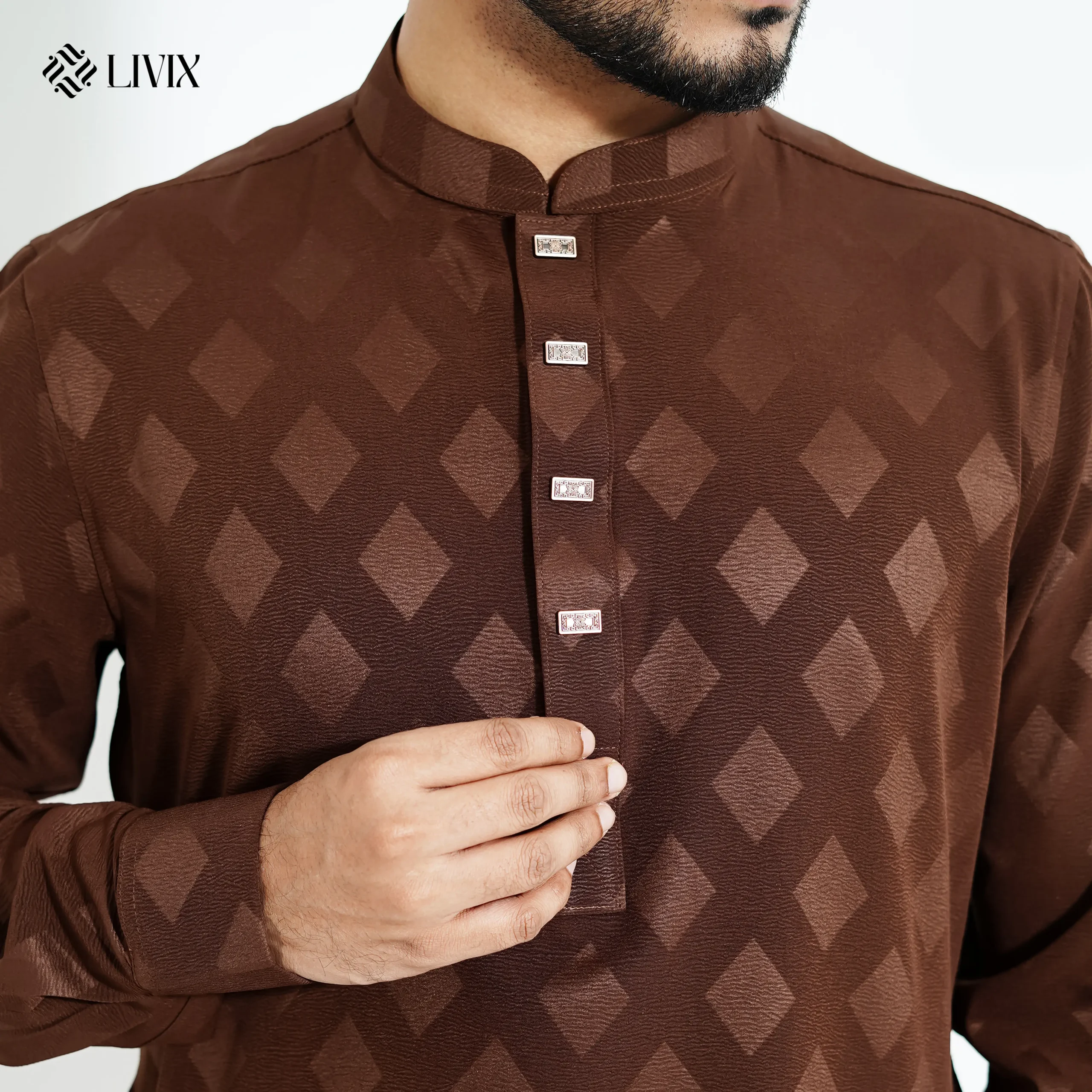Step into elegance with the Livix Platinum Series Panjabi, crafted from luxurious China Jafran Fabric for a truly refined traditional look. This premium fabric offers a smooth texture, rich appearance, and comfortable feel, making it perfect for special occasions and festive gatherings.