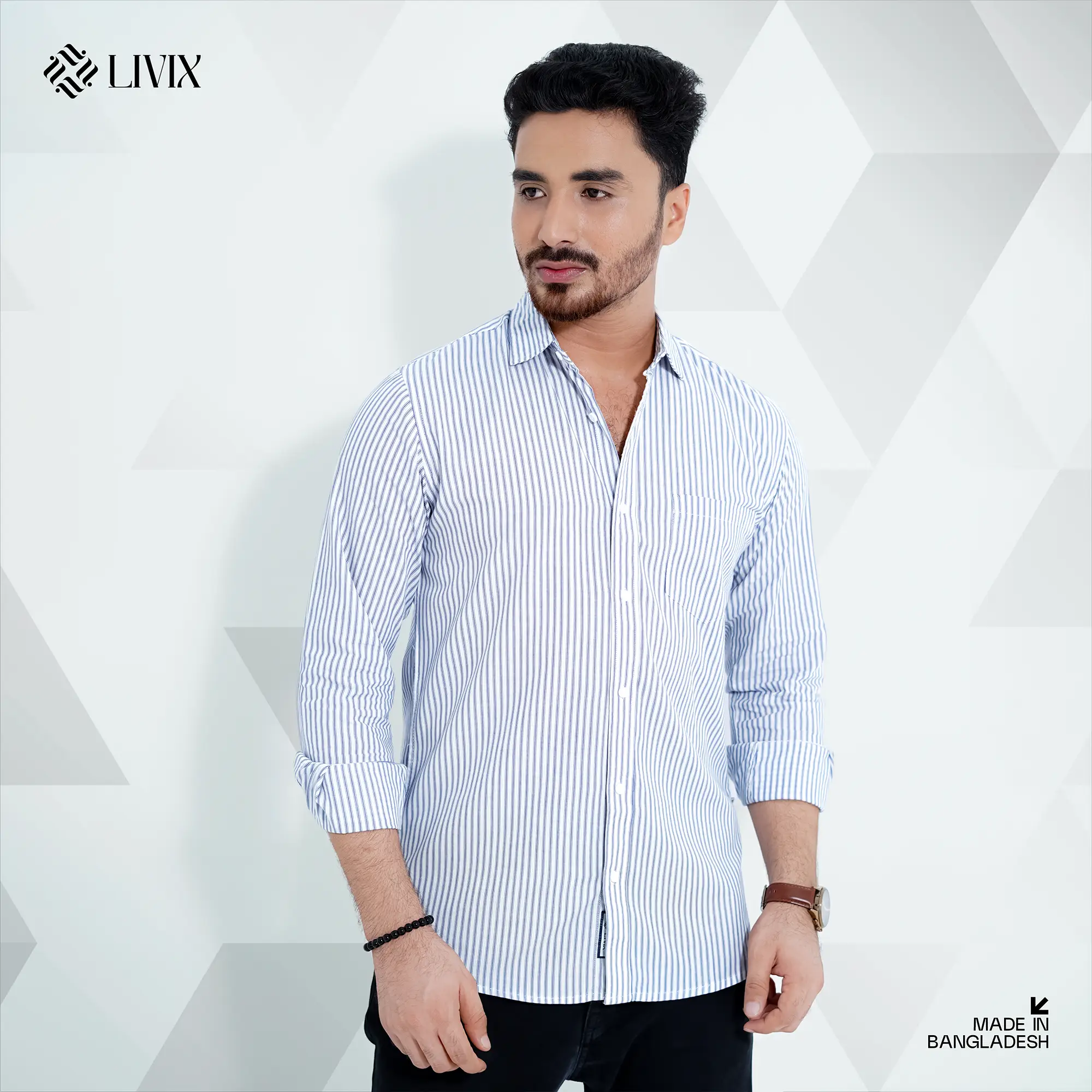 Step into effortless style with the Livix Premium Shirt, crafted from 100% Cotton Export Fabric for superior comfort and durability.