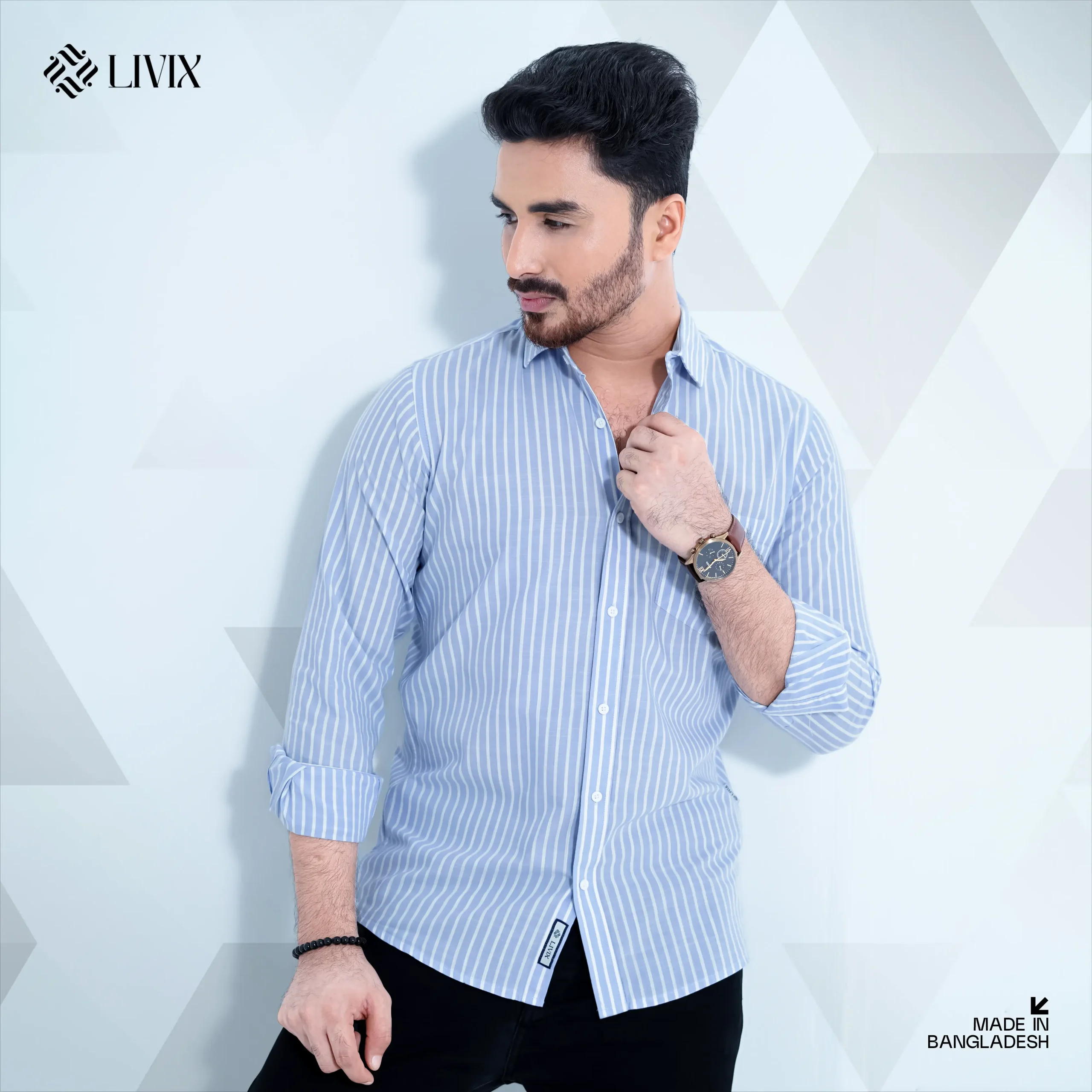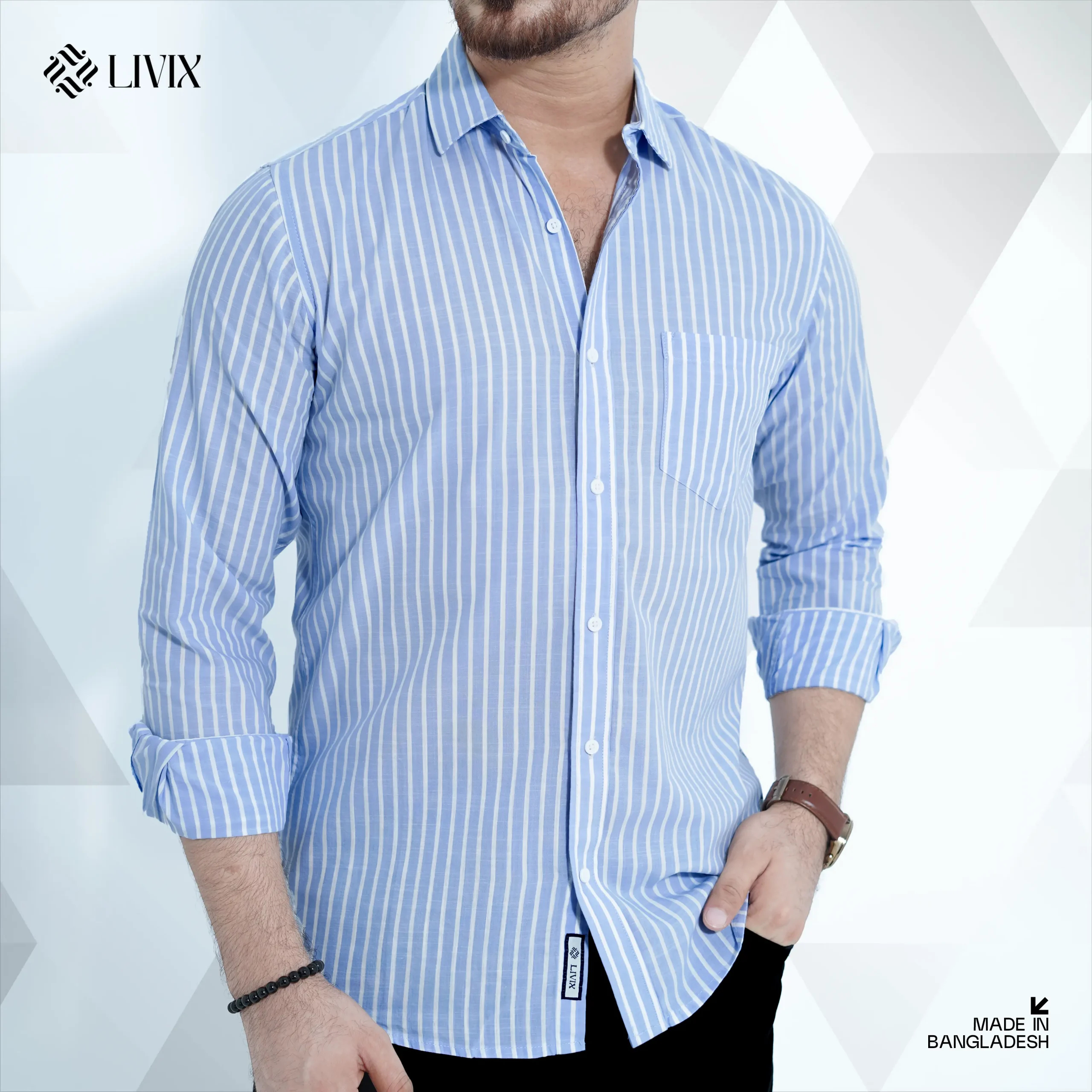 Step into effortless style with the Livix Premium Shirt, crafted from 100% Cotton Export Fabric for superior comfort and durability.