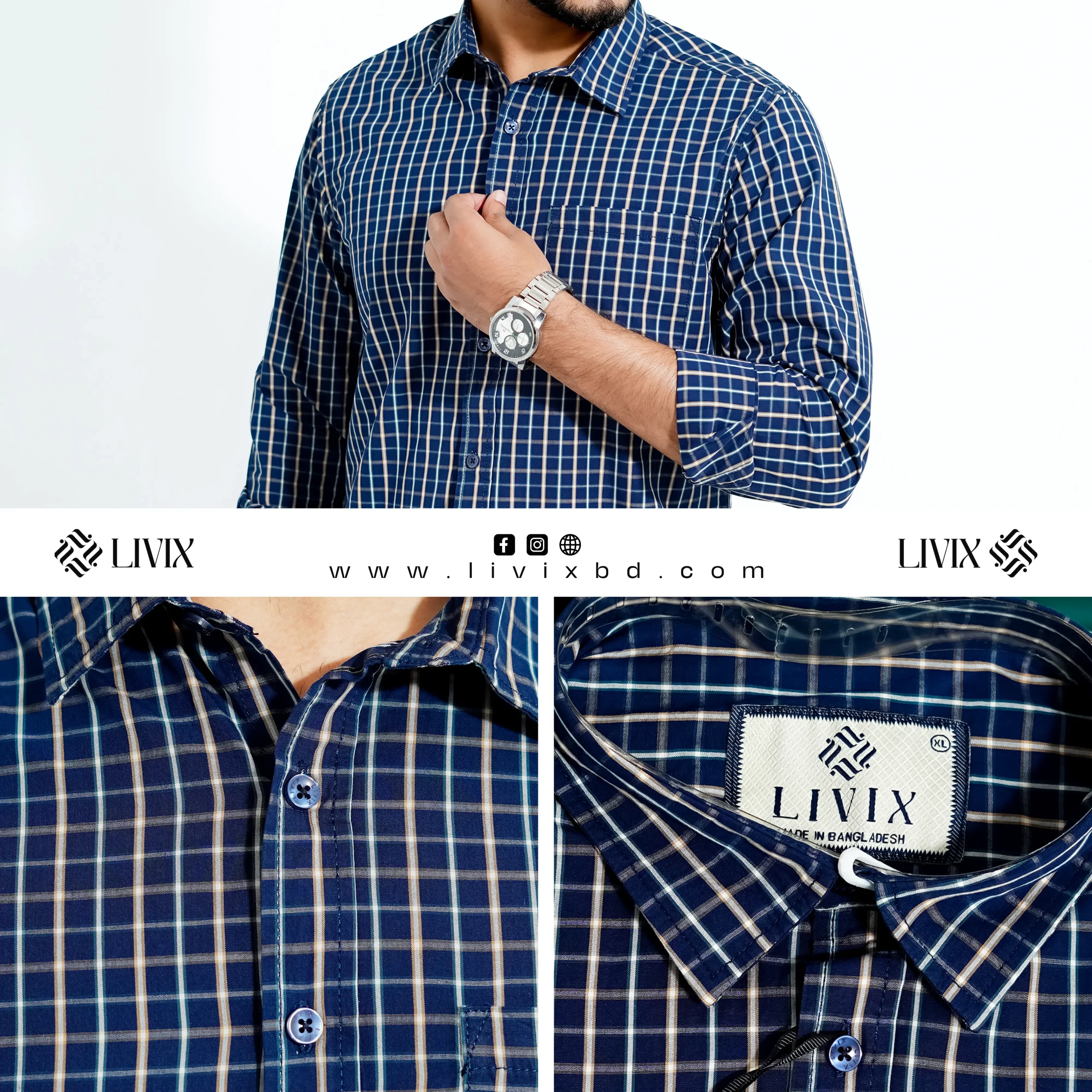 Step into effortless style with the Livix Premium Shirt, crafted from 100% Cotton Export Fabric for superior comfort and durability.
