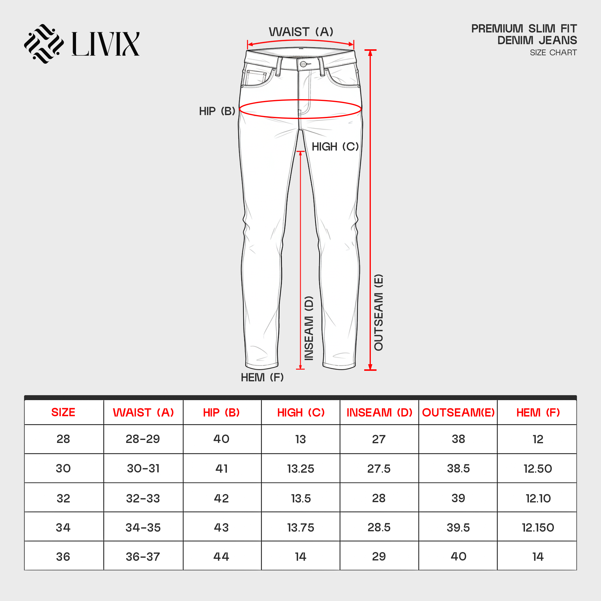 Livix brings you the Slim Fit Denim Jeans Pant, crafted from Premium Denim Stitch Fabric for an exceptional blend of comfort and durability.